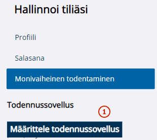 • Määrittele todennussovellus.